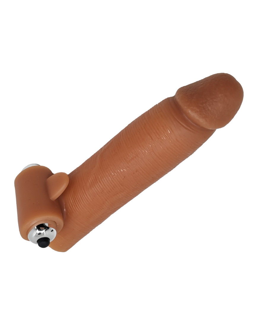 Funda extensora elaborada en silicona real que se adapta a cualquier tamaño de pene suave, cómodo y flexible con vibración y estimulación para clítoris.