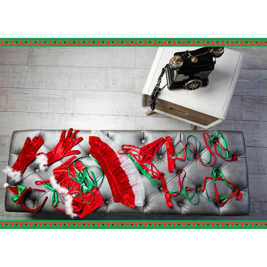 Incluye: Bralette, Panty, Ligas, Falda, Guantes y Balaca.