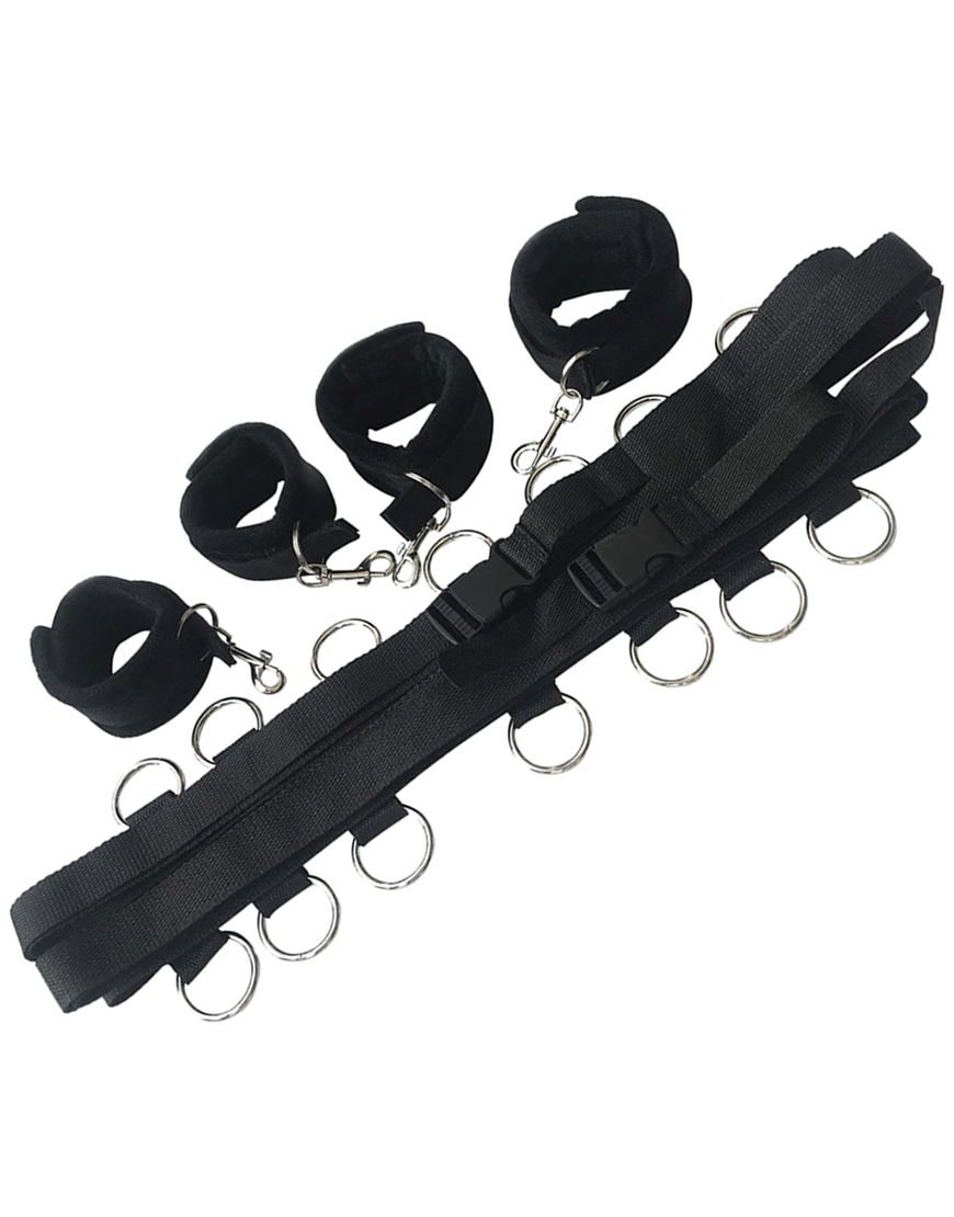Juego de correas de amarre y sumisión atadura a la cama con dos pares de esposas para muñecas y tobillos, un kit de bondage perfecto para un nuevo mundo sexual
