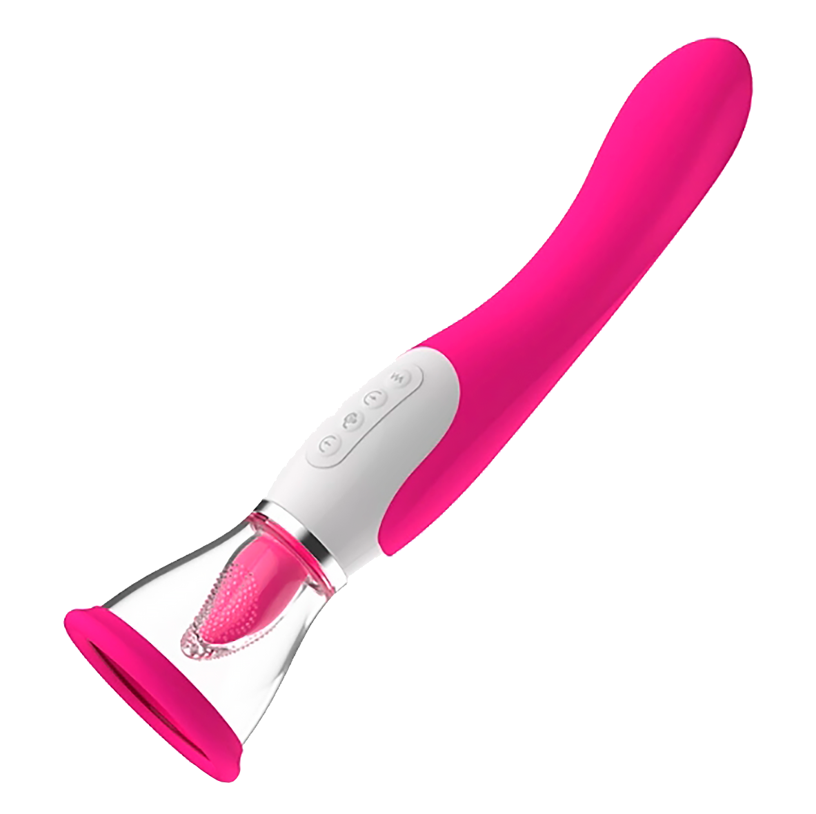Disfruta de un potente vibrador de silicona a la vez que experimentas el sexo oral con el succionador. La succión y la lengua se pueden usar de forma simultánea o independiente.